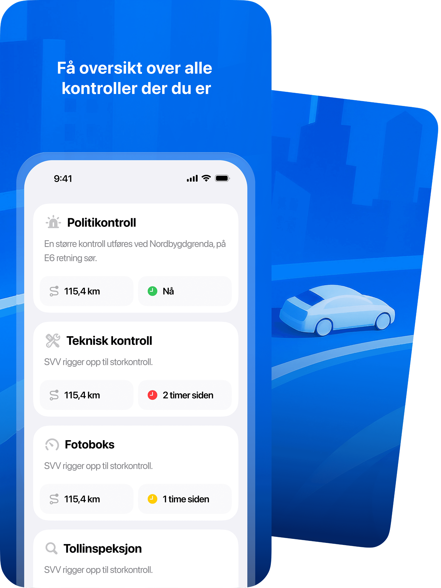 Kontroller skjer. Spørsmålet er om du vet om dem. Sanntidsvarsler fra 500 000+ sjåfører som deler det de ser.